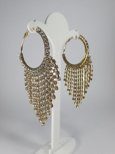 Orecchini cerchio con fili di strass pendenti