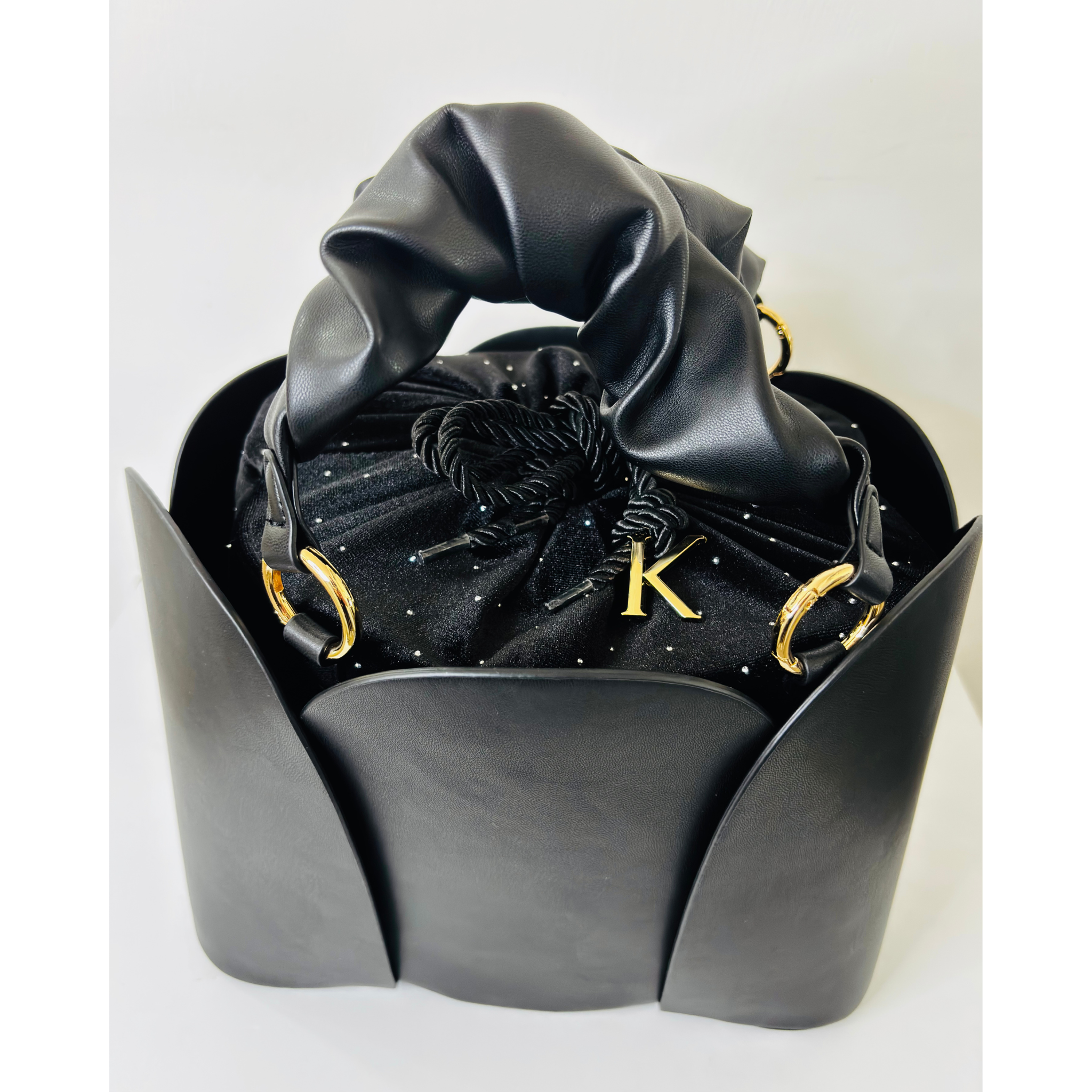 Borsa Kontessa con sacca interna in velluto con microstrass per un tocco di eleganza. Chiusura con laccetto per una maggiore sicurezza. Inclusa la tracolla removibile per diversi modi di portare la borsa.