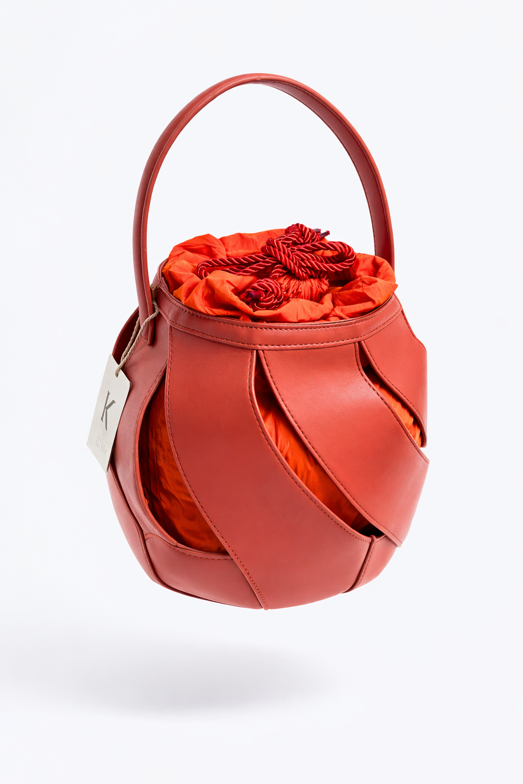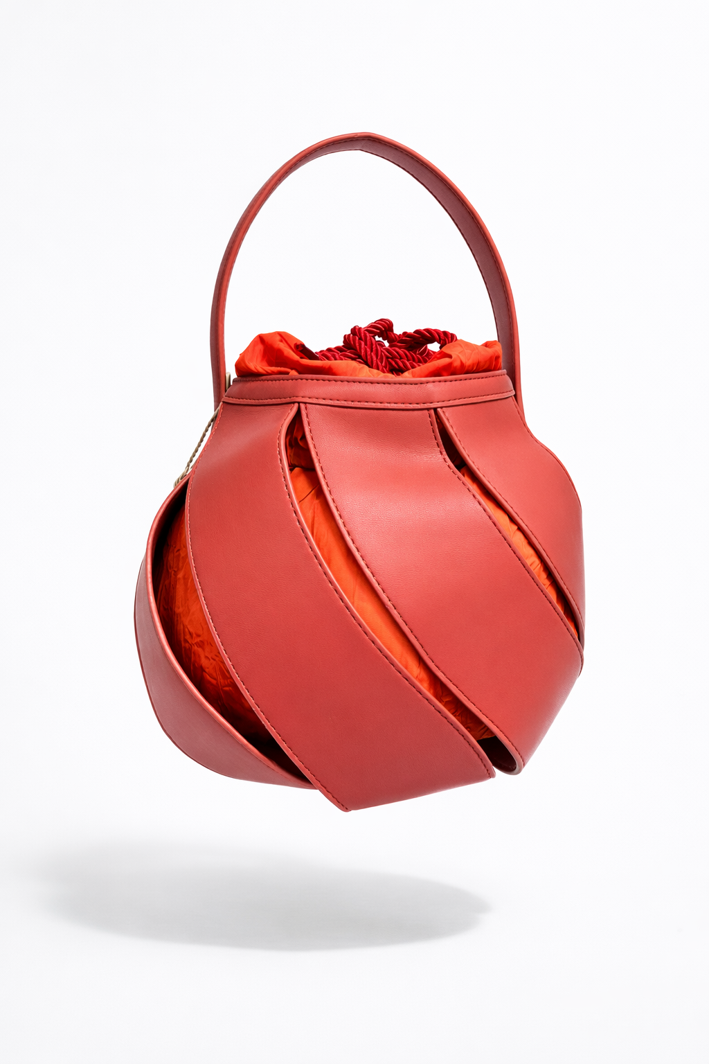 Eleganza contemporanea e design distintivo definiscono questa borsa secchiello Kontessa. Realizzata con lavorazione artigianale, presenta una struttura unica a pannelli avvolgenti e un raffinato sacchetto interno in tessuto con chiusura a cordoncino. Il manico rigido consente una presa comoda e sofisticata, perfetta per completare outfit sia casual che eleganti. Il colore rosso intenso dona carattere e femminilità, rendendo questo accessorio un vero statement di stile.