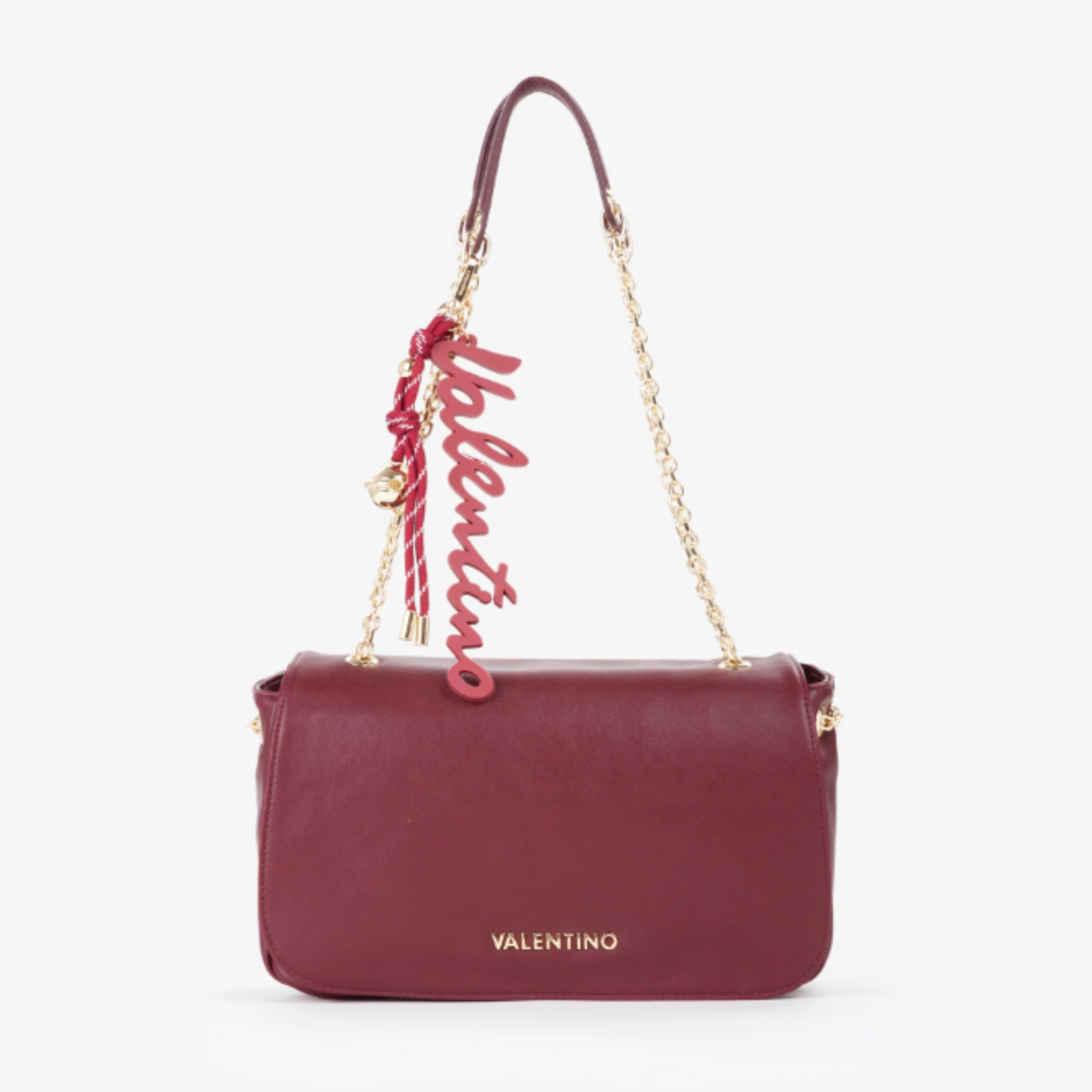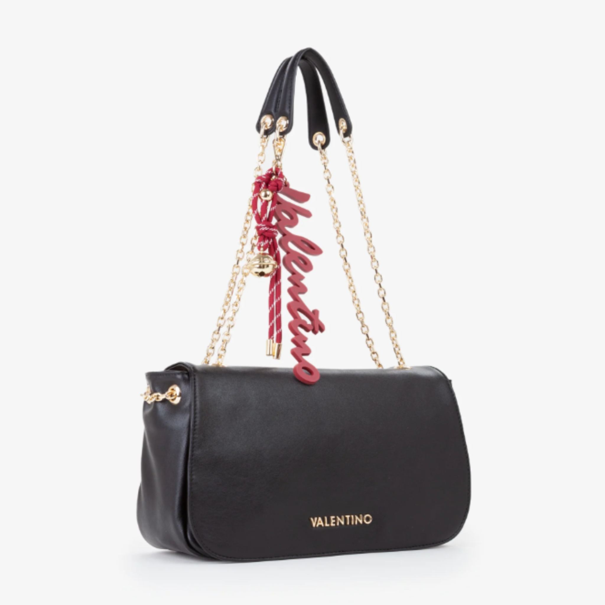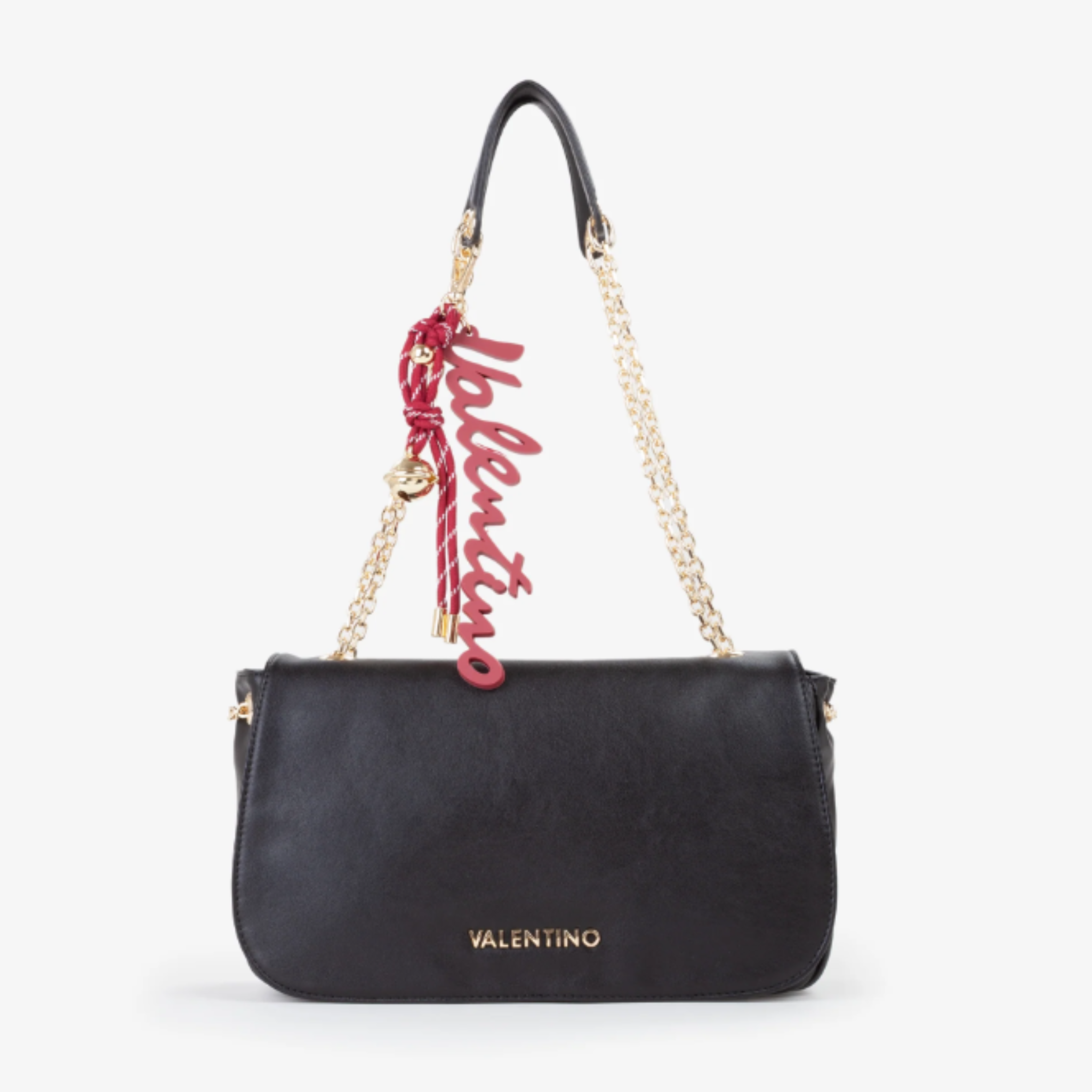 Scopri l'eleganza senza tempo della borsa Valentino, realizzata in pregiata ecopelle e arricchita con una catena dorata dal design sofisticato. Il tocco esclusivo del portachiavi con il logo "Valentino" in acrilico rosso e il campanellino dorato aggiungono un dettaglio di lusso e unicità. Perfetta per ogni occasione, questa borsa unisce eleganza e praticità, grazie alla sua tracolla regolabile che permette di indossarla in diversi modi, sia a mano che a spalla.