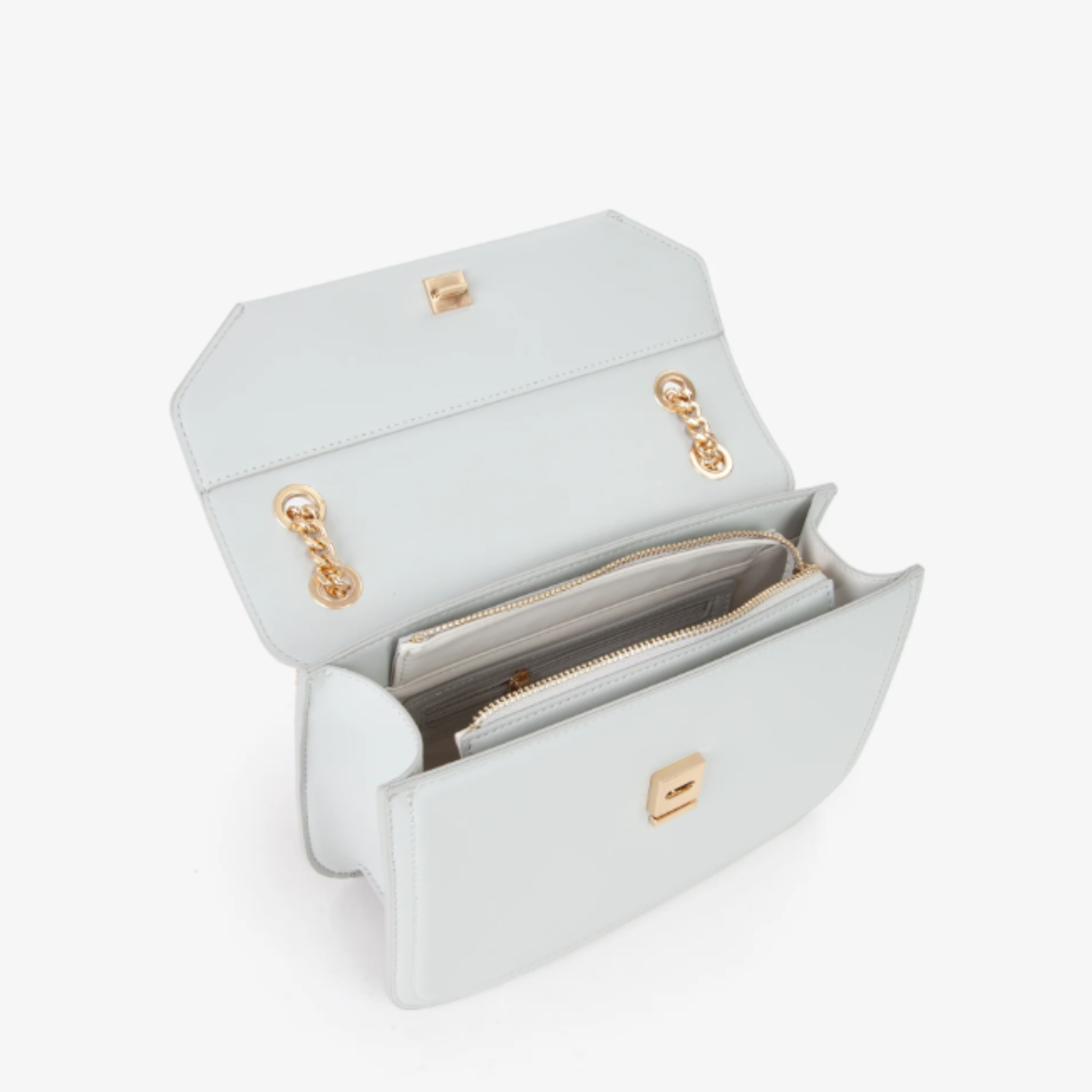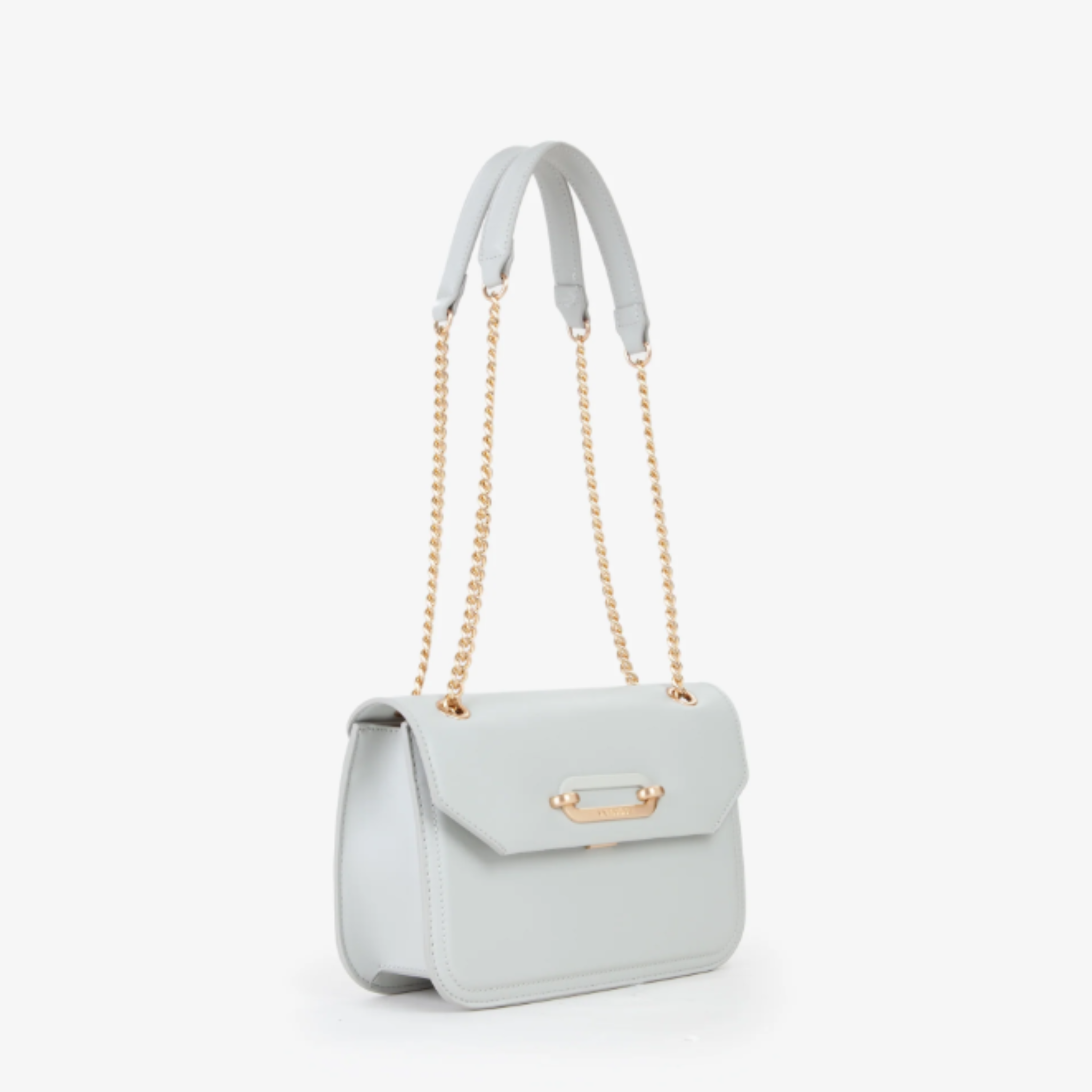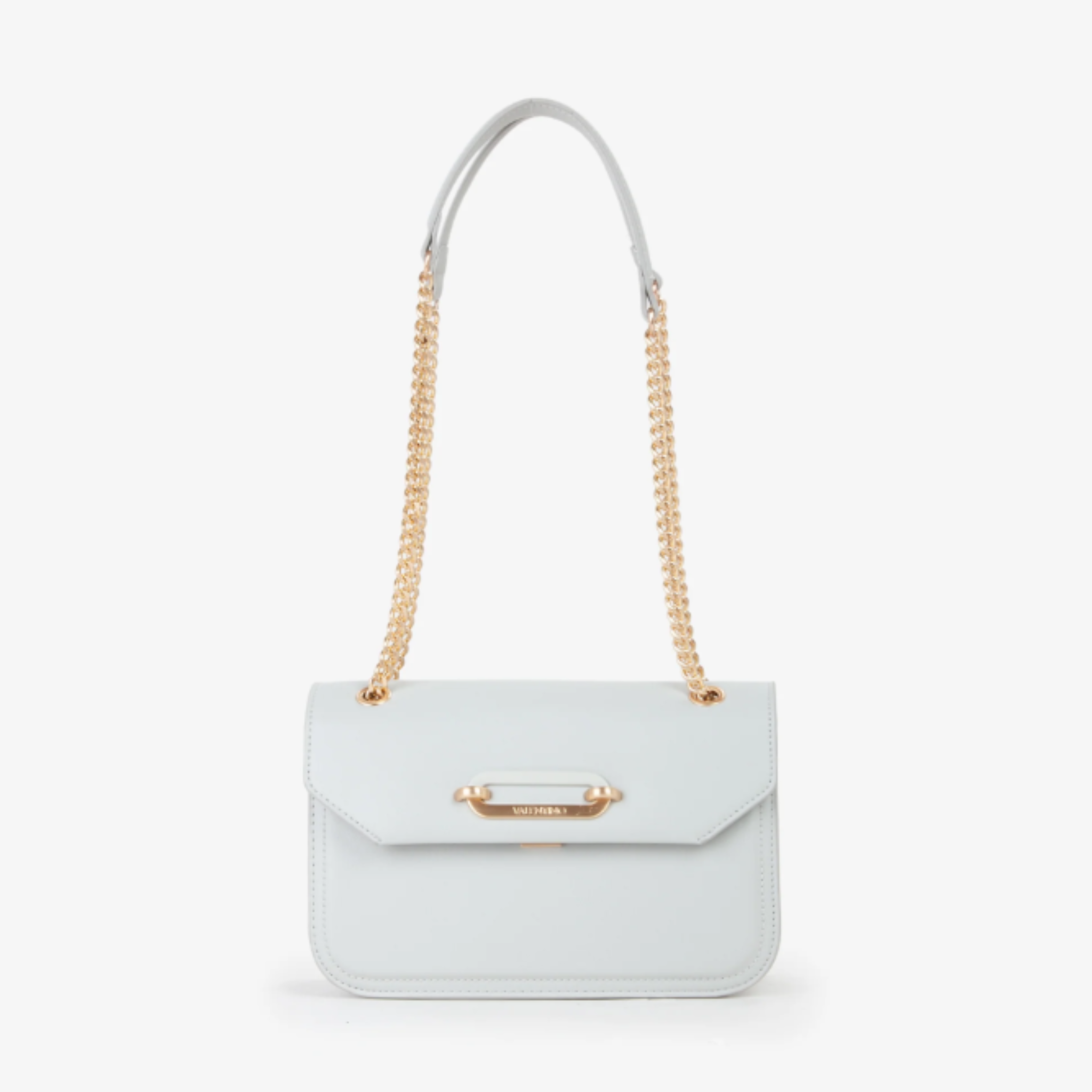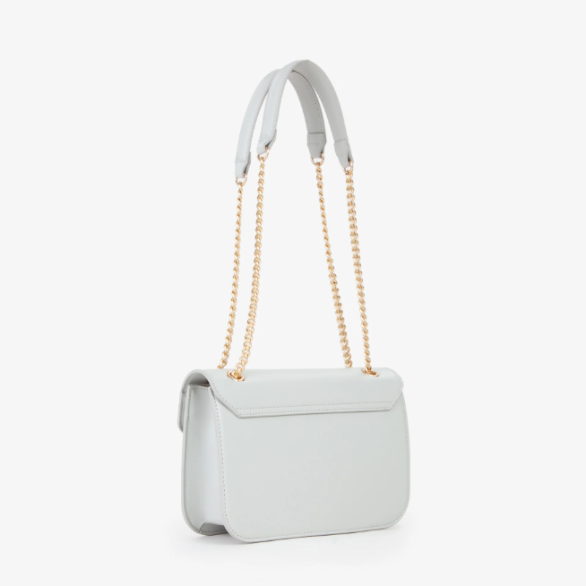 Elegante e sofisticata, la borsa Mario Valentino in colore ghiaccio è l'accessorio perfetto per completare il tuo look con un tocco di classe. Realizzata in ecopelle di alta qualità, questa borsa si distingue per il suo design moderno e raffinato, con una delicata catena dorata che aggiunge un contrasto perfetto. La chiusura con il logo Mario Valentino in metallo dorato offre un ulteriore dettaglio di lusso. Adatta per ogni occasione, da eventi formali a uscite quotidiane, questa borsa è un must-have per ogni appassionata di moda.