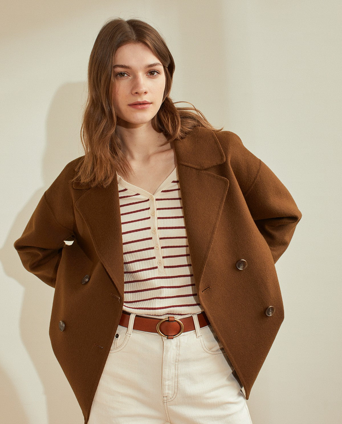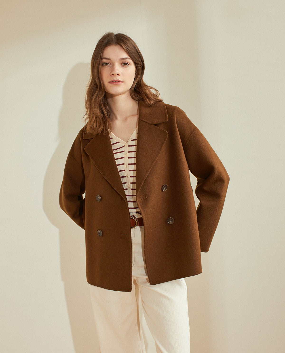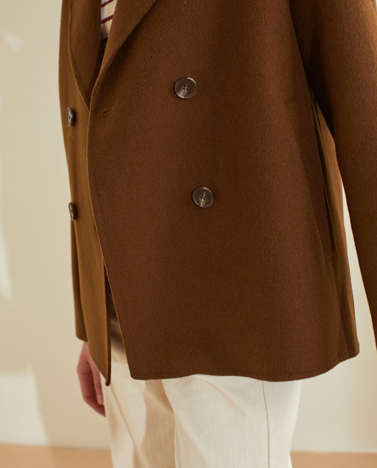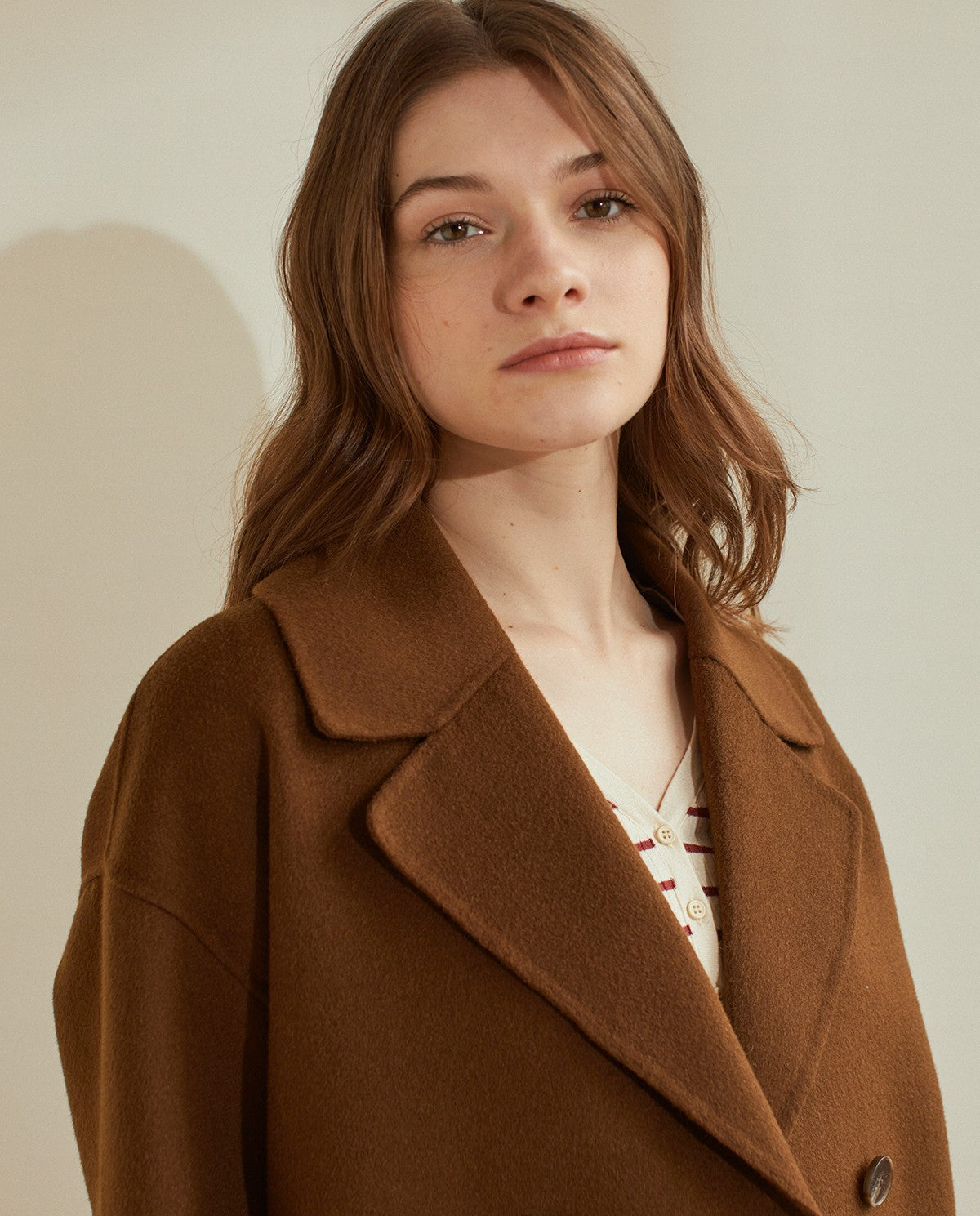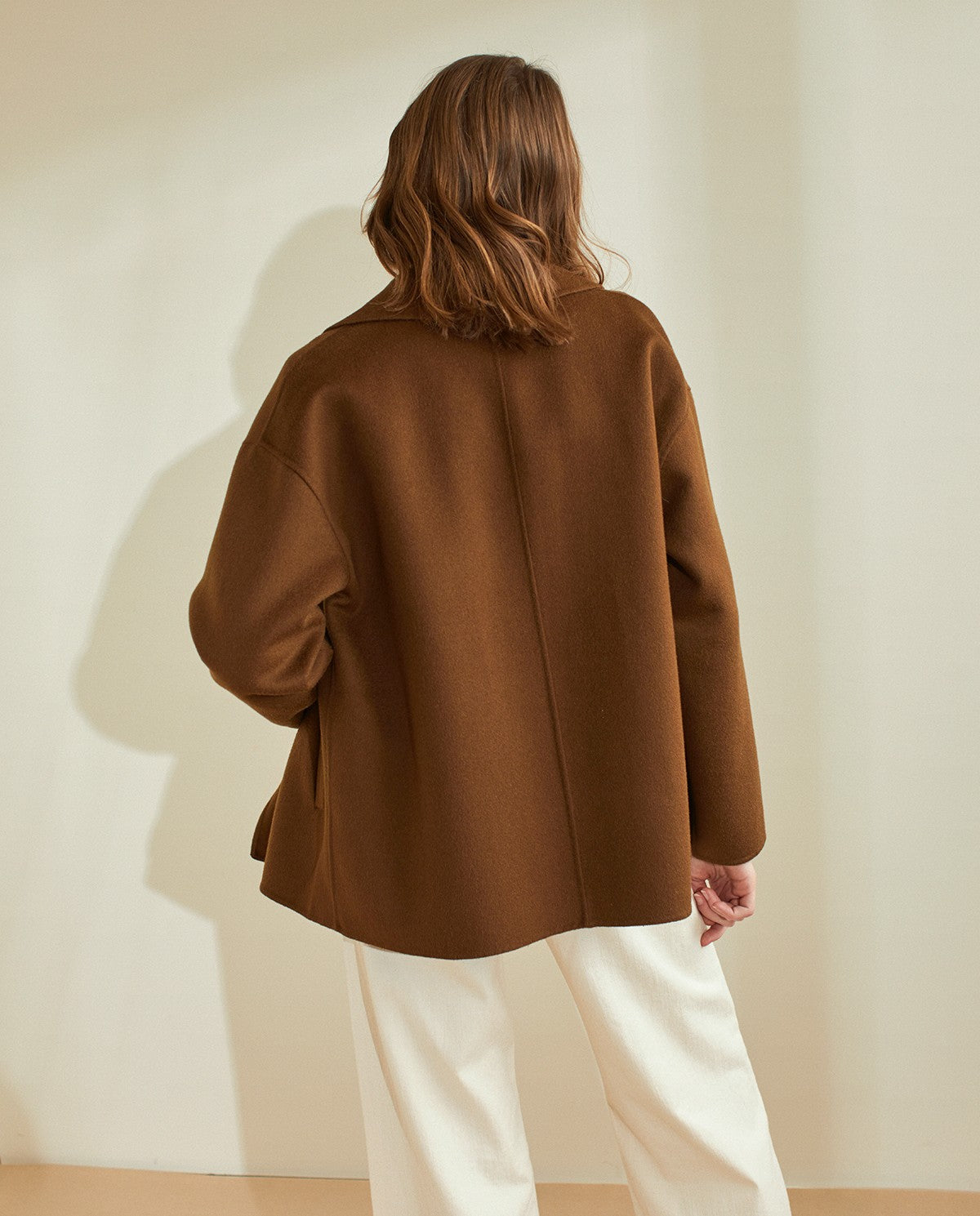 Cappotto con collo a rever fatto a mano con maniche lunghe.