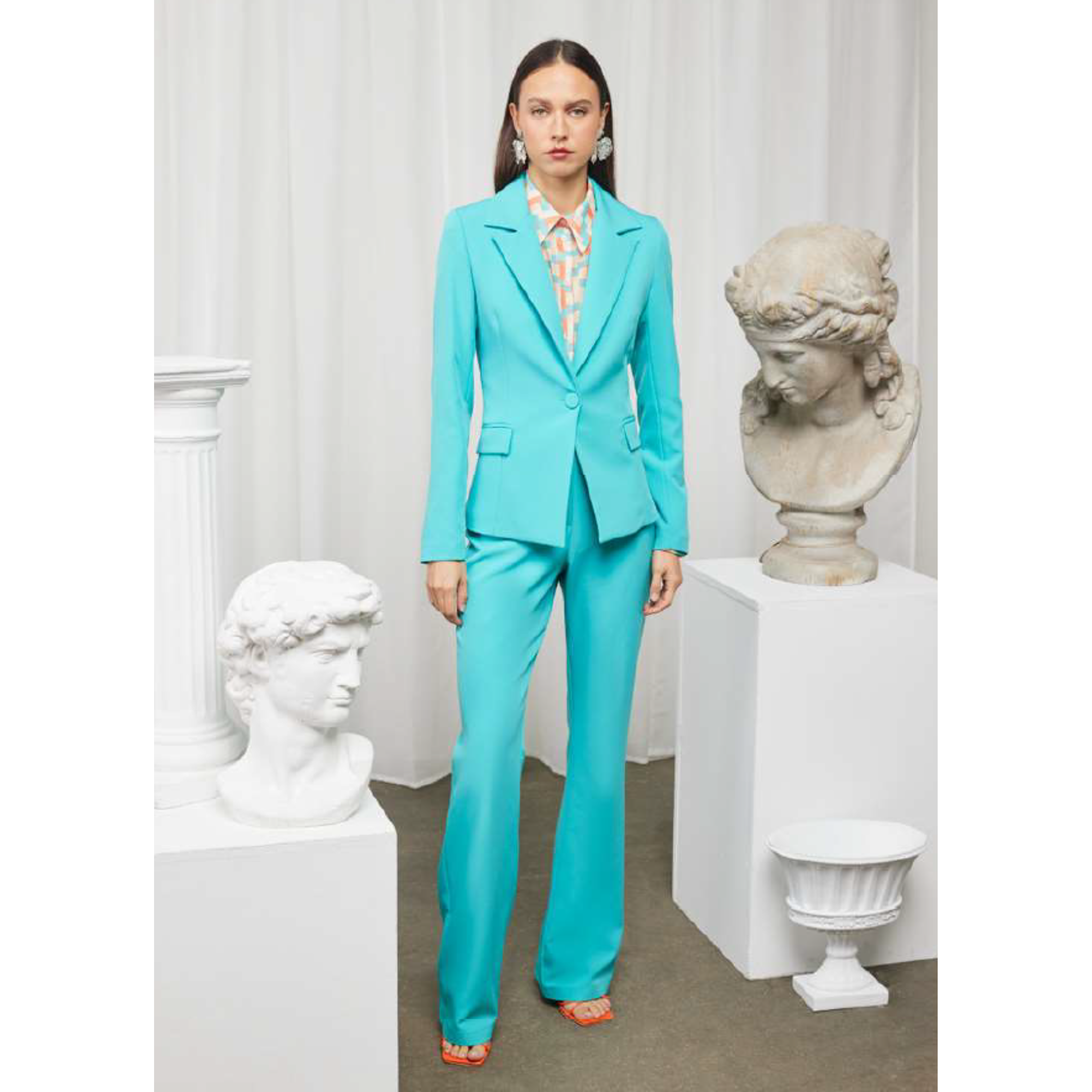 La giacca Celye da donna in elegante tonalità turchese è il capo perfetto per un look sofisticato e contemporaneo. Il taglio sartoriale valorizza la figura, mentre il design pulito con rever classico e chiusura monopetto dona uno stile raffinato e versatile. Realizzata con tessuto di alta qualità, questa giacca garantisce comfort e una vestibilità impeccabile, ideale per outfit da ufficio, eventi o occasioni eleganti.