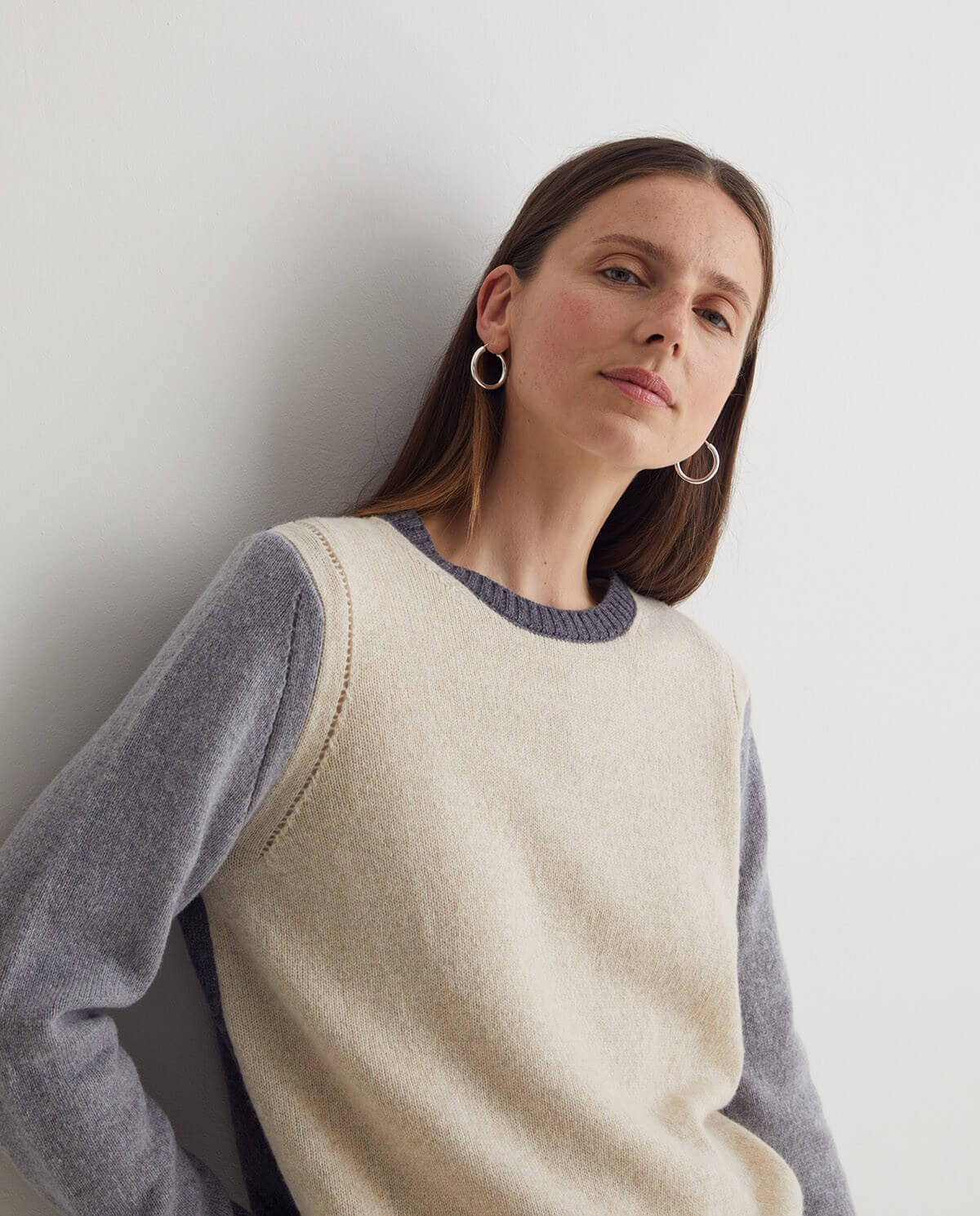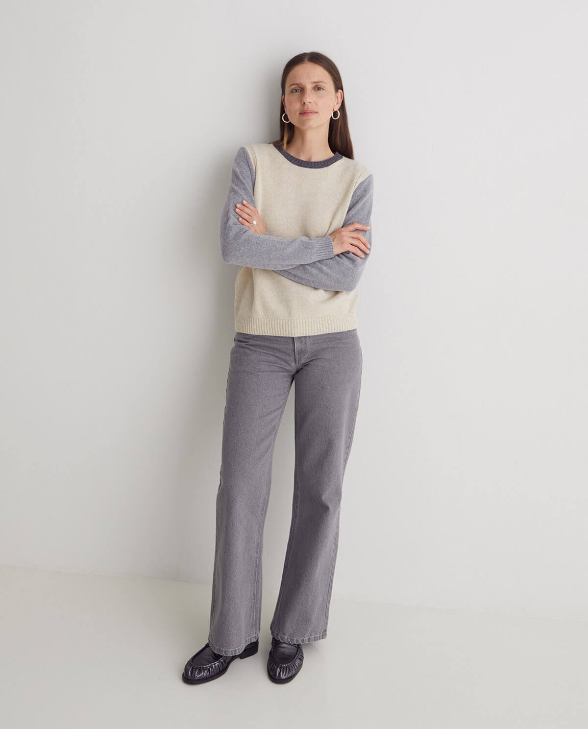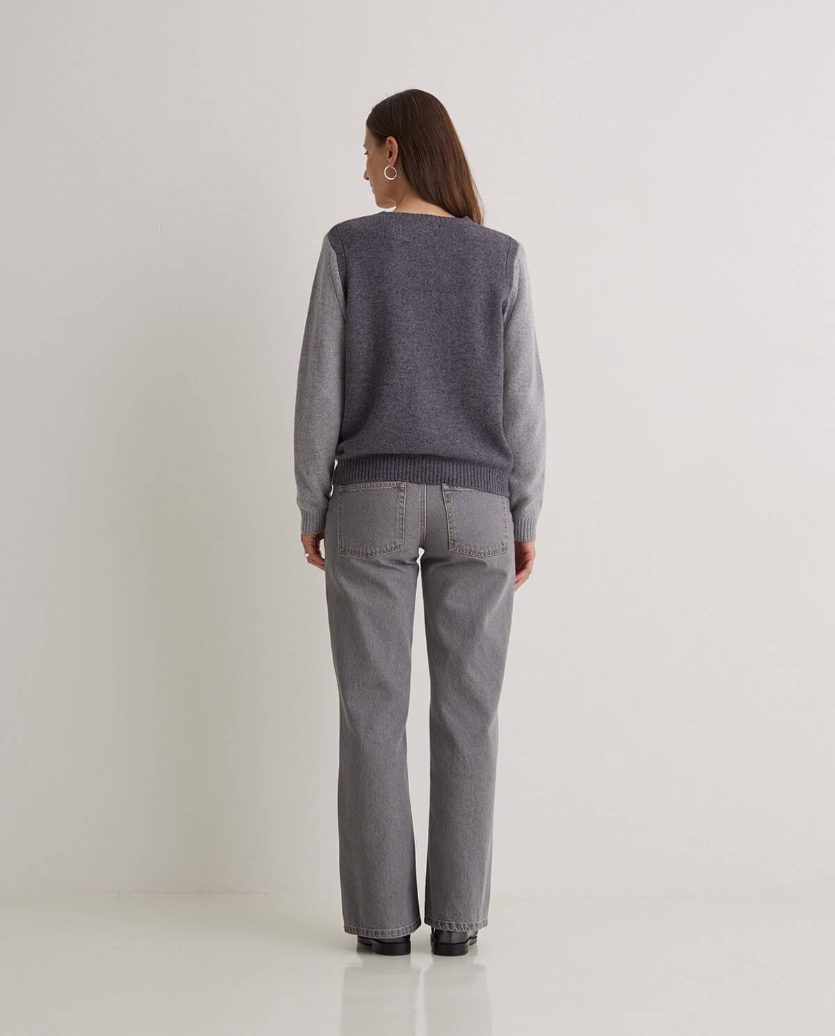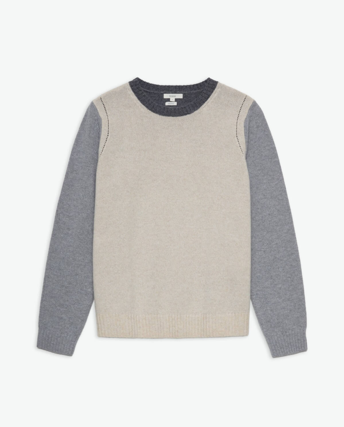 Maglione tricolore Yerse realizzato in lana certificata RWS e nylon riciclato combina sostenibilità e comfort. La vestibilità regolare e lo scollo rotondo offrono un comfort versatile, mentre le maniche lunghe con lavorazione a traforo aggiungono un dettaglio tecnico raffinato. I dettagli a coste completano un design contemporaneo, ideale per chi cerca un capo tecnico ed elegante. Composizione: 80% lana RWS, 20% nylon riciclato.