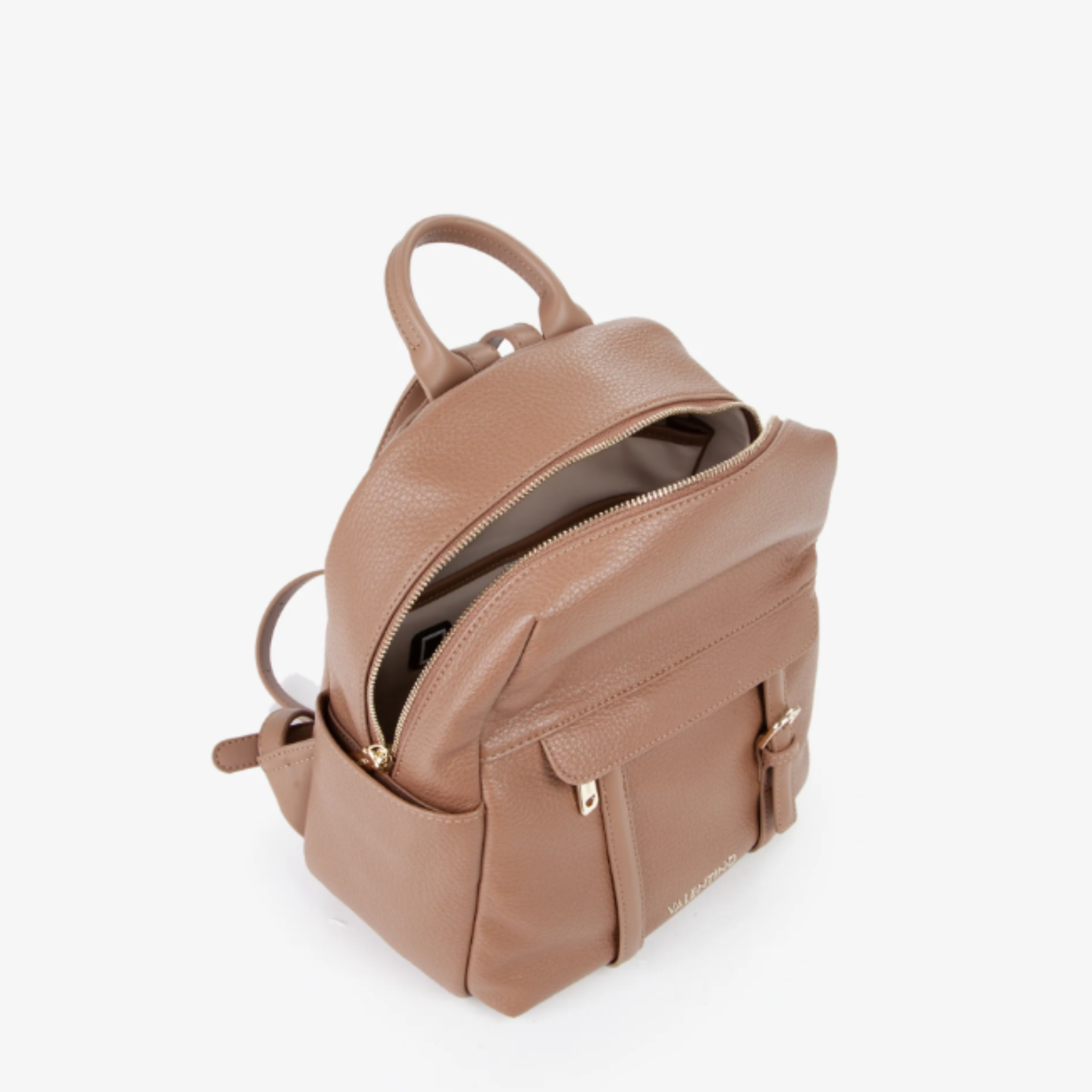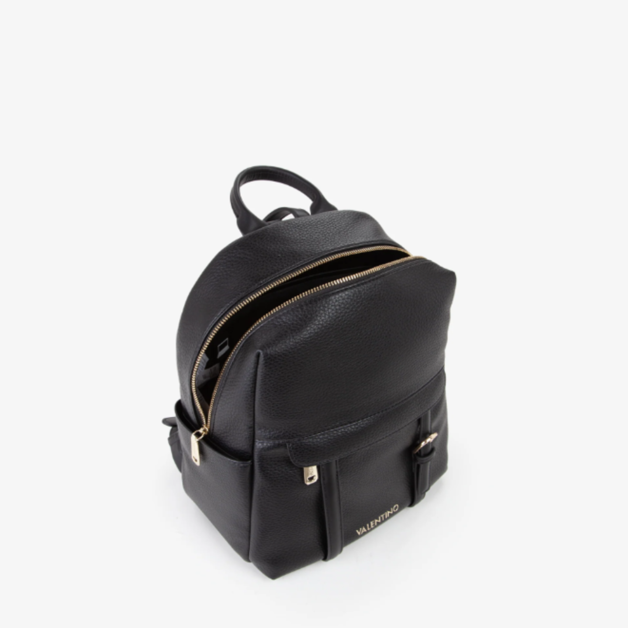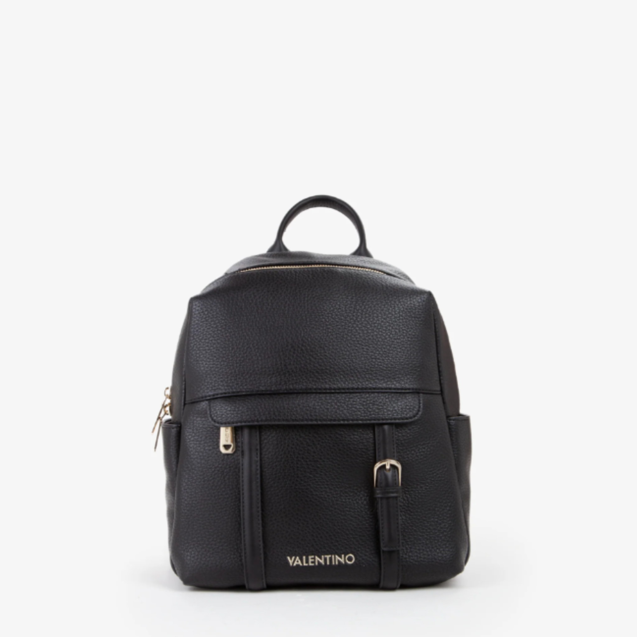 Dotato di una comoda tasca frontale con zip e pattina, chiusura superiore con cerniera e spallacci regolabili, questo zaino combina funzionalità e stile contemporaneo. I dettagli in metallo dorato e il logo VALENTINO frontale completano un look sofisticato e moderno.